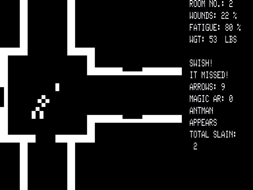 尽管 TRS-80 方方正正、黑白分明的图像在1979年饱受赞誉(也是因为选择本身就不多),《阿帕莎神庙》的成功背后真正的秘密是它的策略系统、精彩的文本以及地牢鲜明的特性。