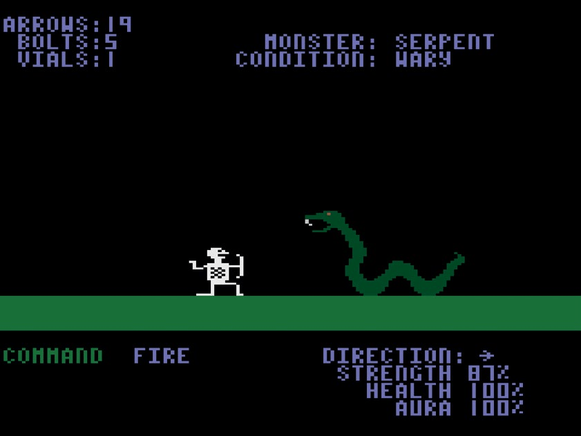 在《龙之眼》之后,另一部融合 2D 格斗风与回合制 RPG 的游戏当属 1989 年的《风行者》(Windwalker)[4]。其他后继者,包括 1988 年的《巫师战争》(Wizard Wars)[5]和 1991 年的《月石:苦难骑士》(Moonstone: A Hard Days Knight)[6]又把这类“搜刮宝藏”的游戏风格发扬光大。作为此类游戏的奠基者,《龙之眼》虽已成为鲜为人知的“老古董”之一,但它对后世无数游戏产生了深远影响,其价值值得肯定。