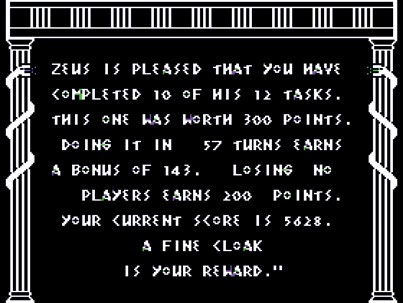 他的下一款游戏整体更加自洽,被很多粉丝认为是他水平最高的作品。《赫拉克勒斯的归来》与希腊神话结合得十分紧密,也许都可以给它打上“寓教于乐(edutainment)”的类型标签了。不过就像玩《俄勒冈之路》(The Oregon Trail)[3]一样,玩家也必须对与古希腊神话、传说和文化有关的大大小小的方面有所了解。