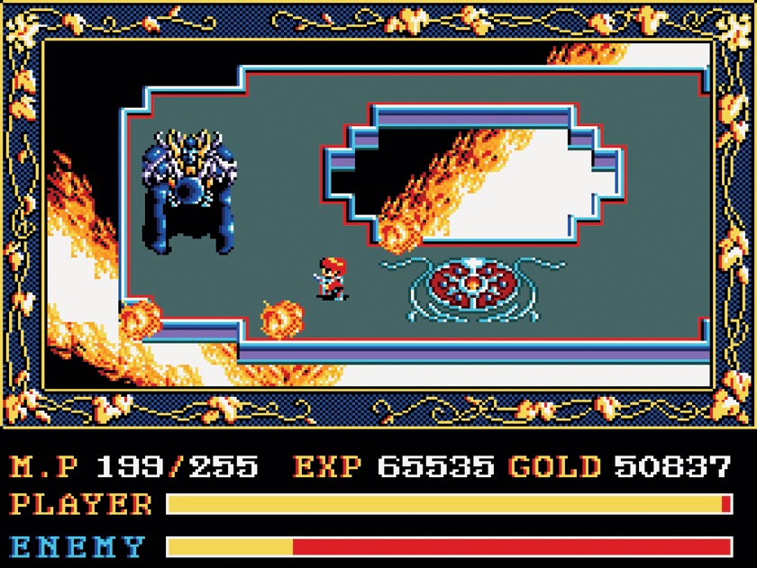 这一切听上去可能有些过于简陋——毕竟玩家要做的也不过是在地图上到处漫游、见到怪物就径直冲过去而已。不过,游戏的乐趣正在于此。《伊苏》并没有费心去设计冗余的解谜环节,也不会让玩家无头苍蝇似地乱转。大部分时候,游戏都为你提供了相对简短而又直白的冒险体验,其中蕴藏的惊喜和魅力,正是同样令《塞尔达传说》(Zelda)系列经久不衰的秘诀。