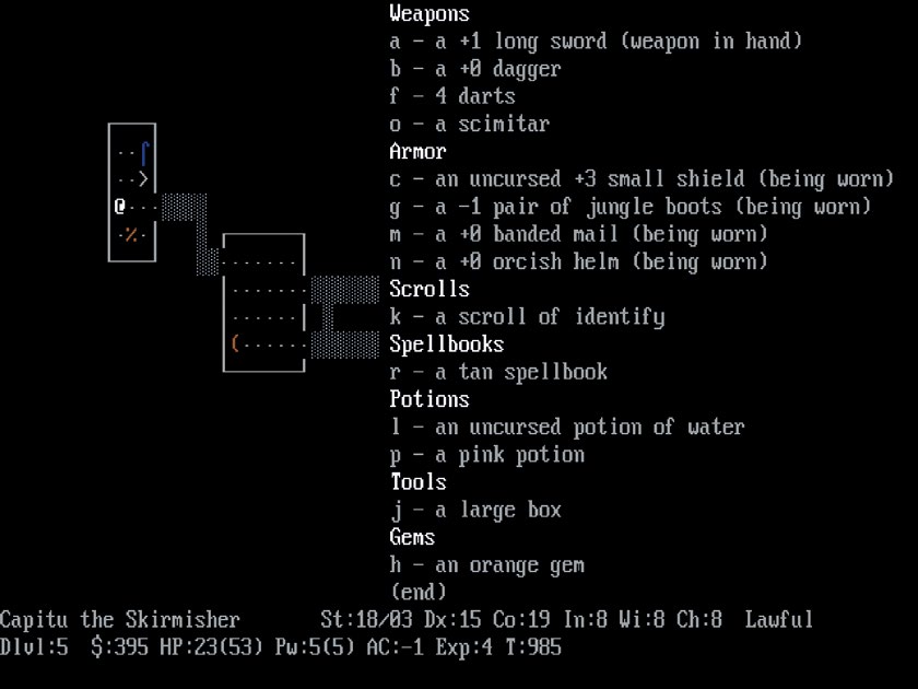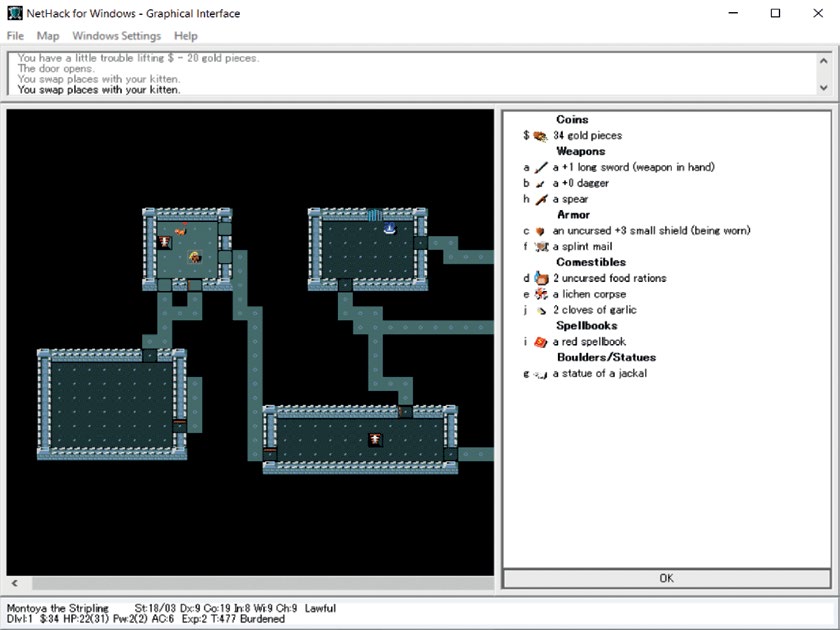[4] 新玩家都应该去看看 www.nethackwiki.com 上的新手指南,里面在避免剧透的情况下提供了重要的提示。同样建议新玩家记住一份键盘指令列表。