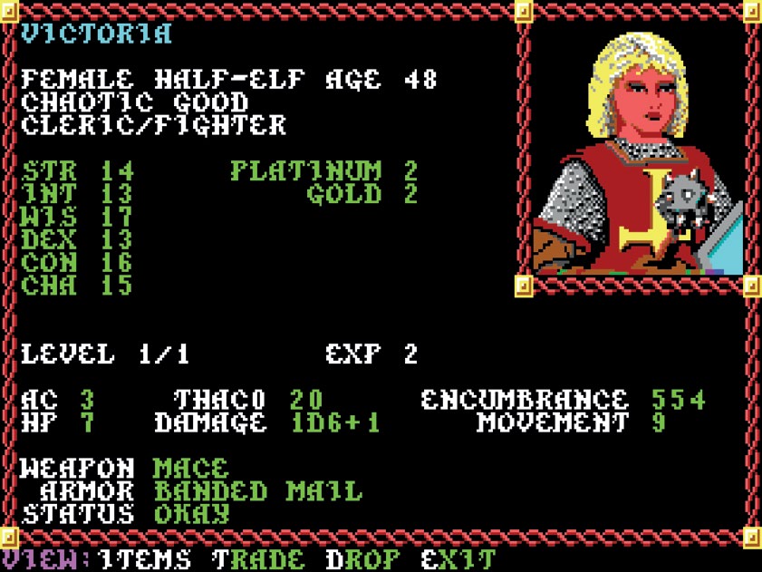 游戏刚开始,玩家就能看出就可这是一款角色扮演类游戏——玩家需要创建一只最多六人的小队,可以使用 AD&D 中多个种族和职业进行组合。