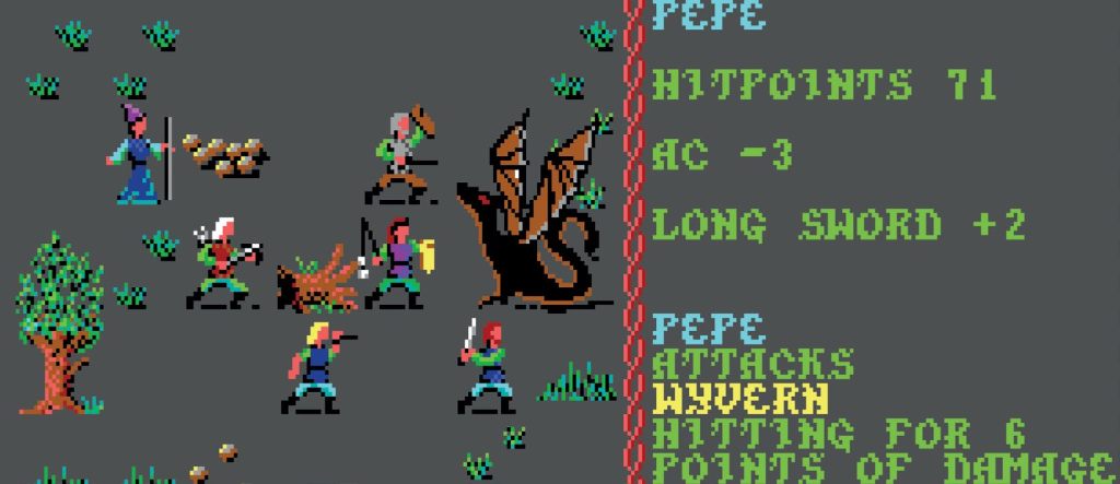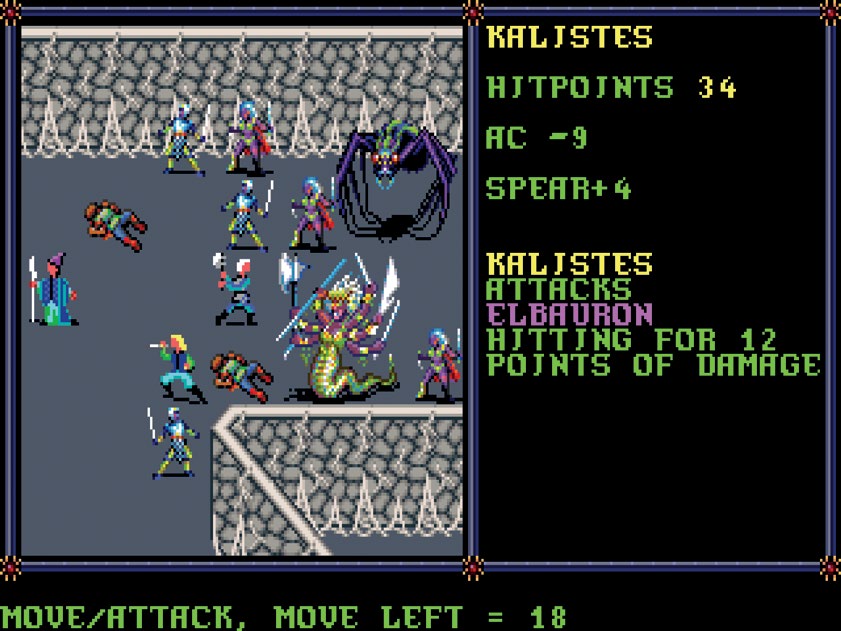 这是第一款《龙与地下城》(Dungeons & Dragons,D&D)官方授权的电脑游戏,忠实地将著名的《高级龙与地下城》(Advanced Dungeons & Dragons,AD&D)纸笔规则带到虚拟世界中来,为后面大量的游戏铺好了道路。游戏对庞大的规则集进行了非常仔细的实现,从咒语书、战斗机制、到数据准确的怪物图鉴,而这在当时是非常不可思议的。像素风的怪物头像都可以在 AD&D 的第一版怪物手册(Monster Manual)中找到对应的原型。其他标志性的游戏机制也被包含在游戏中,比如休息机制,以及学习新法术、施展治疗法术所需的读条机制。
