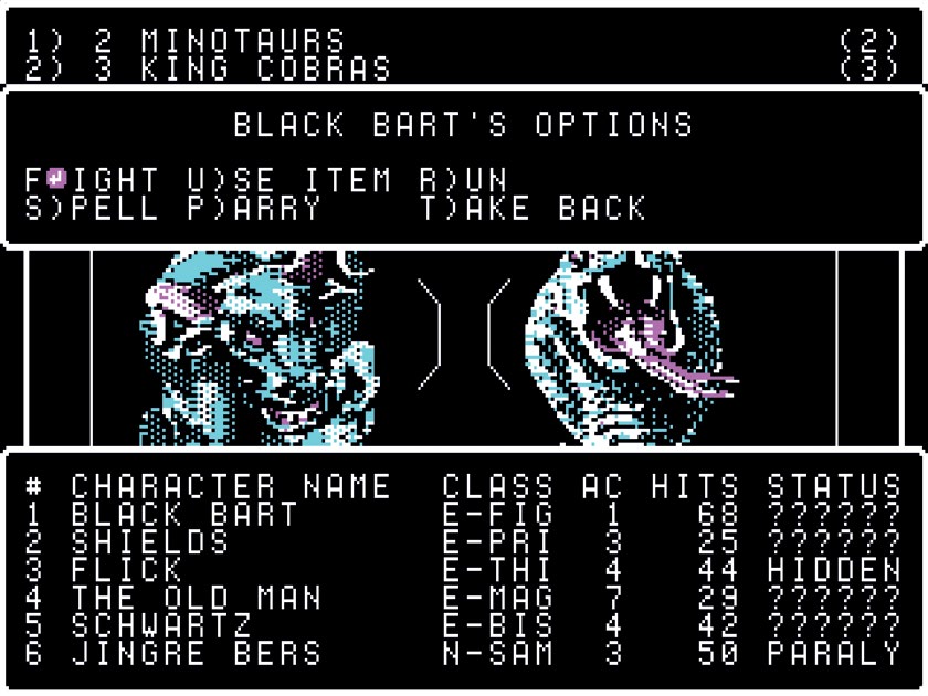 在第一部《巫术》发售的时候,有一位富有激情的程序员 David W. Bradley 开始创作一款野心勃勃的 RPG,叫做《龙之吐息》(Dragon’s Breath)[1]。在 1984 年,他把这个游戏发送给了 Sir-Tech,后者同意发行,但有个附加条件:将其重制为第五部《巫术》。