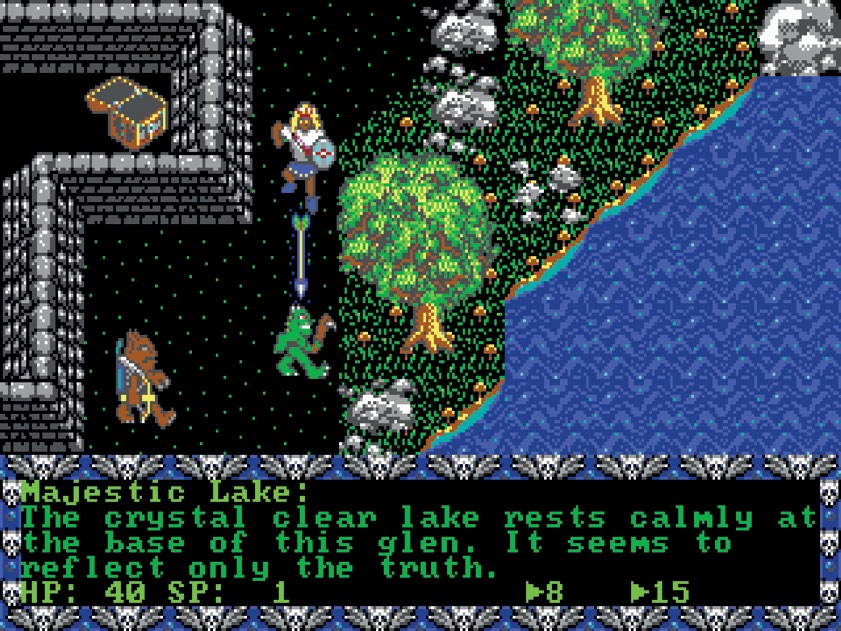 当然,也存在一些脱离时代的槽点,包括基于手册的反拷贝机制、随机生成的宝藏内容、模棱两可的谜题、受处理器速度影响的玩法、以及使用 QuickBASIC[3] 制作的音效和音乐(还有字体)。