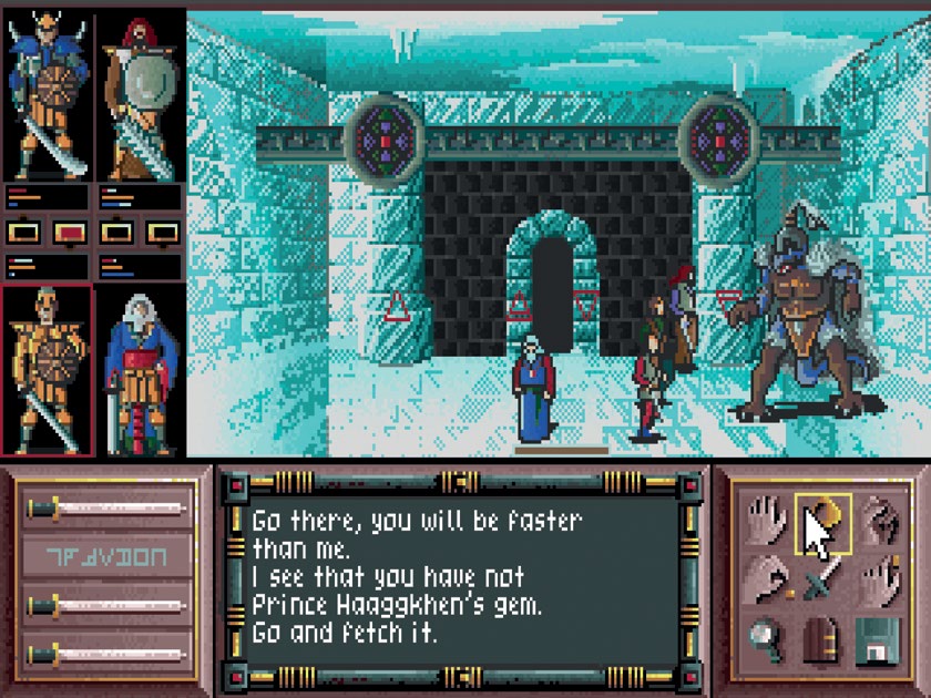 你必须创建一支包含四名英雄(战士 Warrior、侦察兵 Scout、法师 Wizard、和牧师 Priest)的小队,去探索有八位好战的龙子居住的神秘岛屿,收集他们的宝藏并复活巨龙。