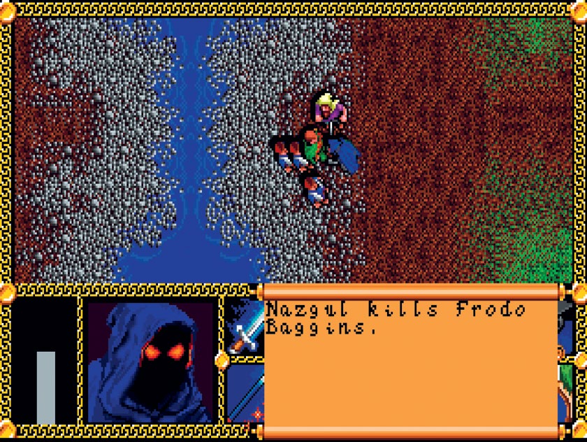 我很清楚地记得我为什么会买《指环王 1》。因为游戏的盒绘很酷,标题也很容易记住。另外,因为游戏载体是容量较大的 CD-ROM ,所以包含了很多过场动画,我完全搞不懂那些片段是从 Ralph Bakshi[1] 的电影中截取的还是根据原书改编的。毕竟我当时才十岁,好吗?