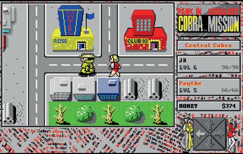《眼镜蛇行动》是冒险和角色扮演类型的杂交产物。玩家使用俯视角探索城市、到访不同的地方、和人们交谈、为了赚钱做做支线任务,还可以找机会跟裸女抛媚眼(比如用望远镜偷窥裸体沙滩)。