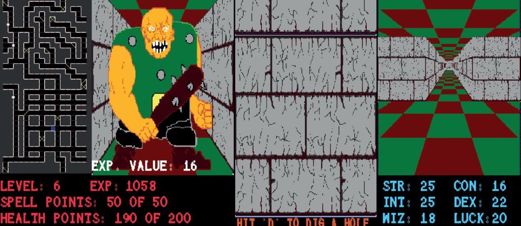 莫拉夫出品的游戏最大的特色在于它同时展现了四个方向的第一人称画面:你随时都能查看自己东、南、西、北方的情况。没有所谓的“朝向”——你可以朝任意方向攻击,按下左键会让你的角色向左走而不是转向左边。