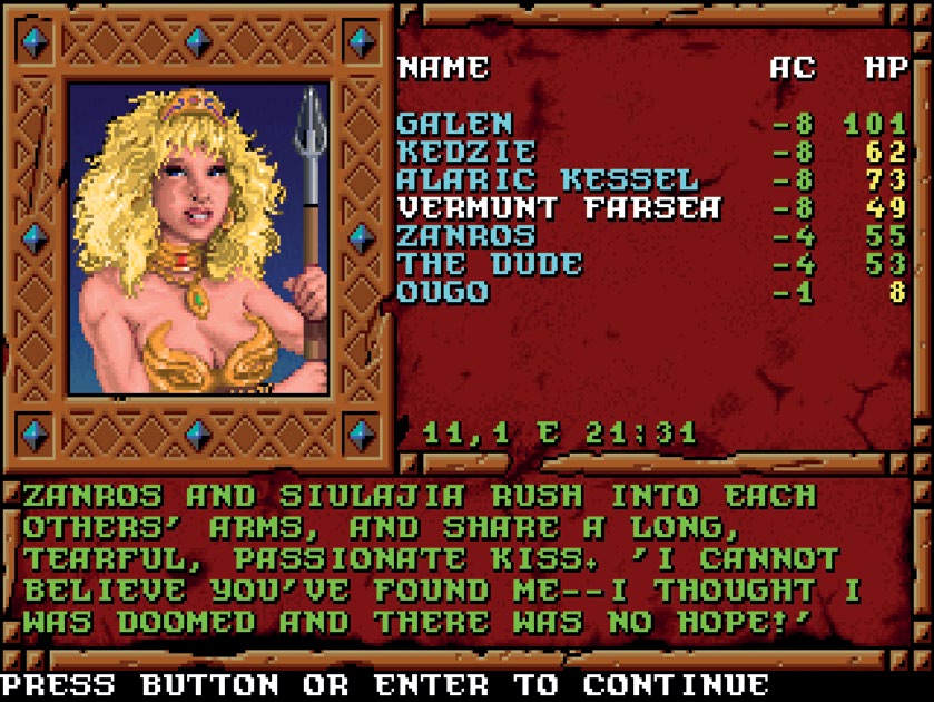 不过,《异域宝藏》游戏机制最有名的“升级”和《创世纪世界:野蛮人帝国》(Worlds of Ultima: The Savage Empire)一样:增加了爱情要素。