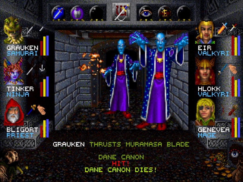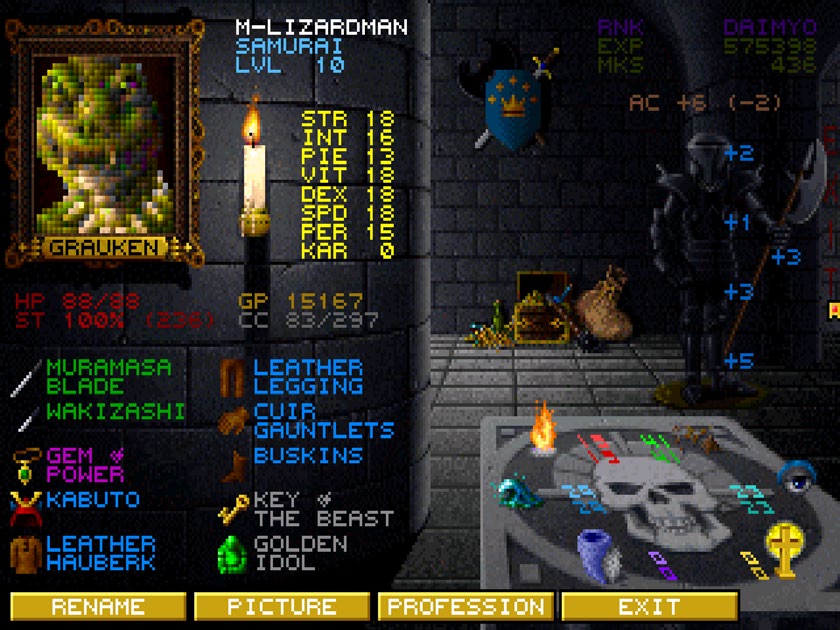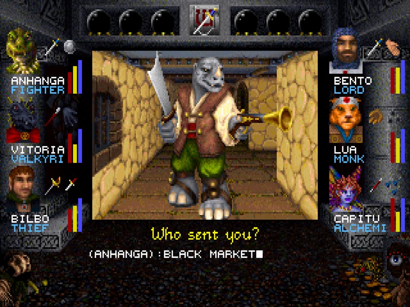 如果没有系列之前游戏的游玩经历,我们仍然能够找到在 Greenberg/Woodhead[2] 时期为《巫术》系列打下的根基:主角仍然是在一块块儿的地砖,也就是整个世界或地城的建筑地块上慢慢移动的。