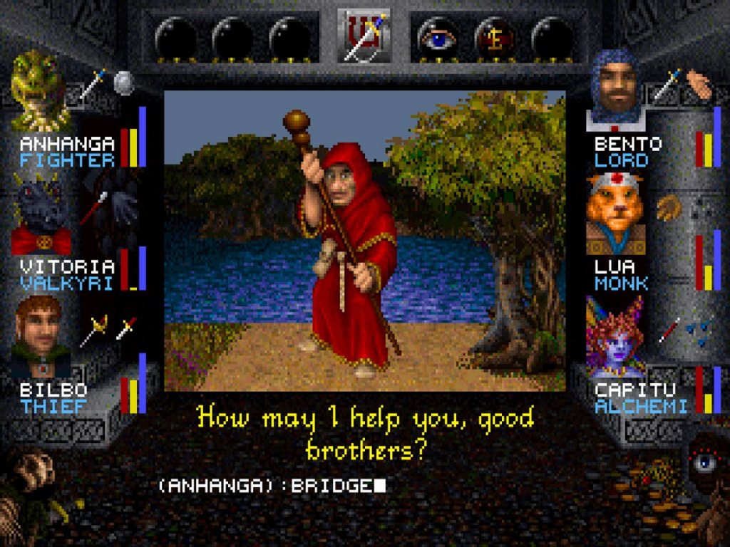 我在第一次游玩《巫术 7》和几年后的第二次游玩中都没能打通它。在 1992 年该作发售后我就进行了游玩尝试,当时我对摇身一变成为电脑游戏的该作仍然一头雾水,因为那会儿我在电脑上还没玩过什么大作。《巫术 7》好比一次天启,一只巨大无朋,匍匐于地的比蒙巨兽(Behemoth)[1],让人很容易就流连忘返,无论是游戏中的地理描写还是其中云遮雾罩的种种谜题都是如此。