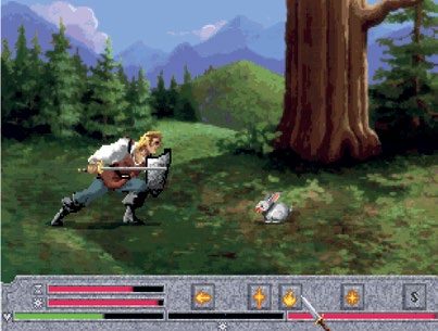 你可以扮演战士(Fighter)、盗贼(Thief)、魔法师(Magic-User),或者从前作中导入一位圣骑士(Paladin)。问题有多种解决方法,比如施展正确的法术、打开正确的锁亦或是打倒正确的敌人。我总是扮演战士,正如尖酸刻薄的旁白所说:“你在读这本完全用单音节单词写的书,很明显,这本书是为战士准备的,它超级有趣。”