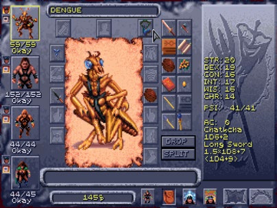 游戏便是由创造队伍开始的。《浩劫残阳》属于是正经《高级龙与地下城》(AD&D)战役玩法,这种规则就很让人熟悉了。你可以选择角色以及种族、阵营、职业、以及调整力量、敏捷和智慧等基本属性。不过现如今的这些游戏有的技术、专长以及被动技能在这游戏里面都没有。