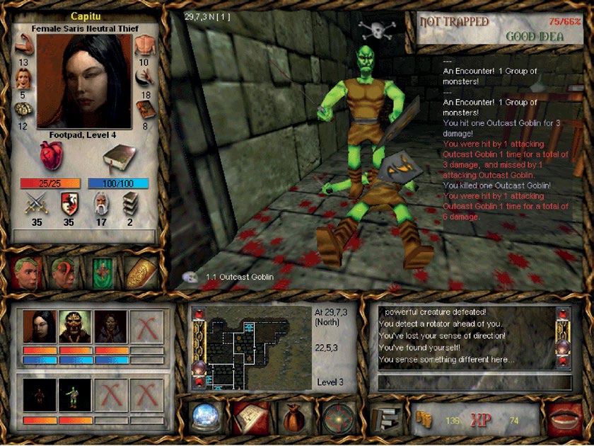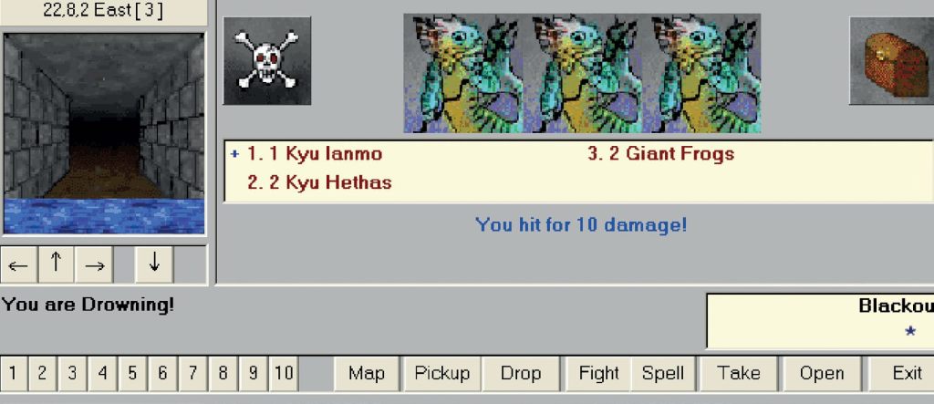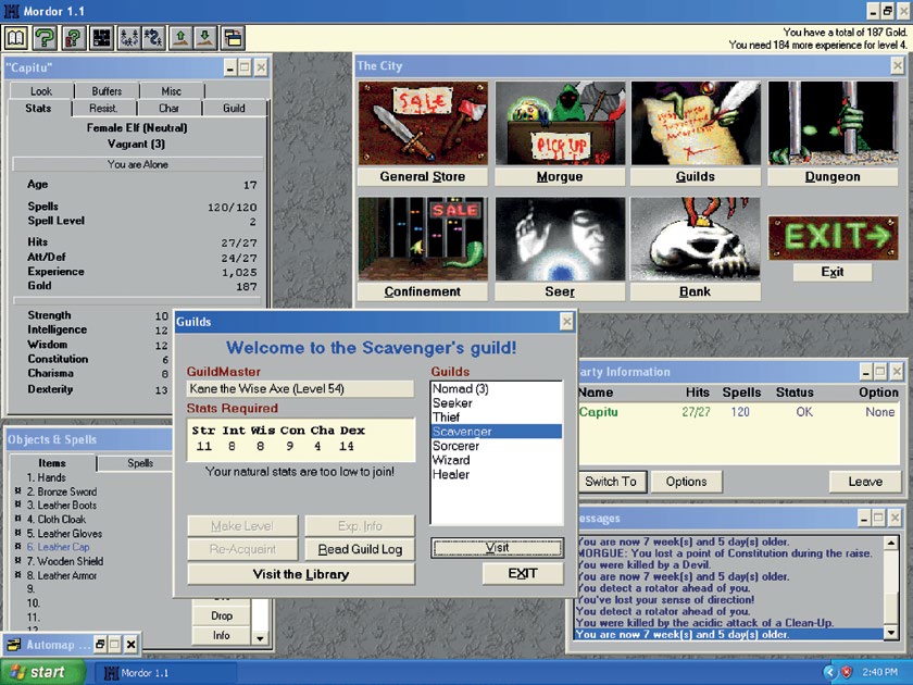 与其他作品的开始阶段不同,你最好在进入游戏之前先阅读一下手册[3]。即使如此,死亡也常伴新手左右。尽管一开始公会可以帮忙解决复活的开销,但没有准备的玩家依然可能会发现自己投入了数十个小时的角色死了,却没有办法立即让他们回归。