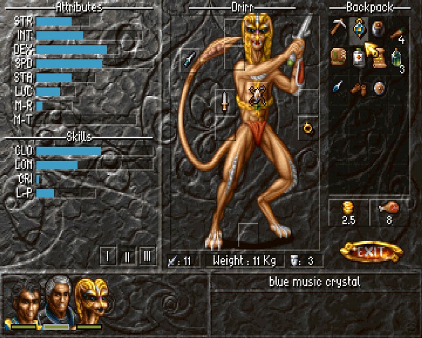 起初我不以为然,但在听到这个游戏的制作者们也参与了我最爱的两款游戏——《琥珀之星》(Amberstar)和《琥珀之月》(Ambermoon)[1]的开发时,便毫不犹豫地买下了它。当时我渴望玩到一款优秀的 CRPG 新作,游玩了几小时后惊喜地发现自己已经爱上了这款全新佳作。