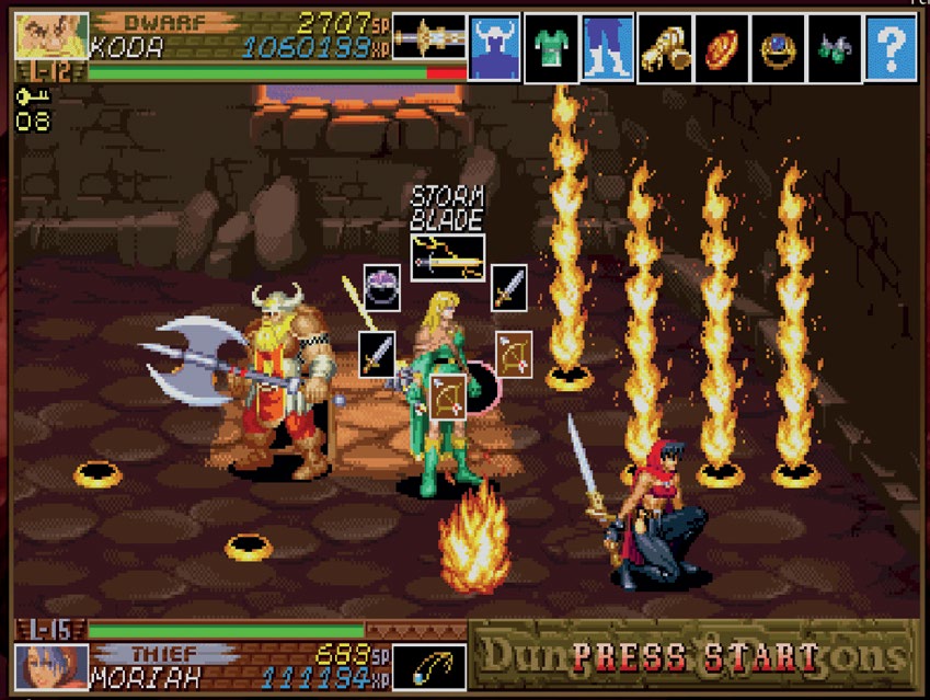 1991 年,Capcom 在街机上发布了《龙王》(King of Dragons),这是一款横版清版(beat ’em up)游戏。《龙王》将《战斧》(Golden Axe,1989)中的野蛮人主题扩展成了一个成熟的、带有《高级龙与地下城》(AD&D)风格的背景设定。《龙王》最多允许三人同时游玩,玩家可以从战士(Fighter)、矮人(Dwarf)、精灵(Elf)、牧师(Cleric)和法师(Wizard)中选择使用的人物,同兽人、巨龙、豺狼人(gnoll)以及其他的幻想生物战斗。于此同时,玩家还可以升级,获得更多的生命值、护甲以及伤害。