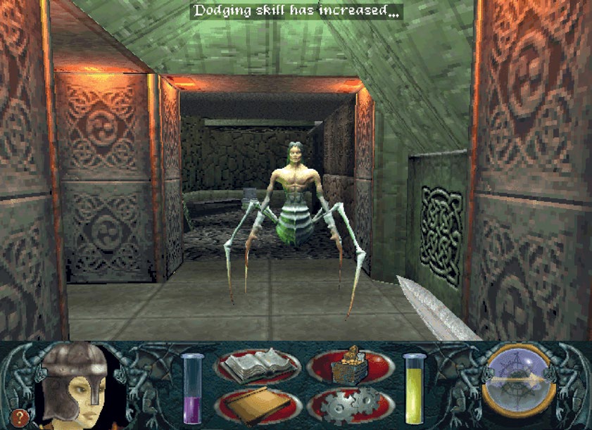 [4] 译者注:除了休息、金钱、商店外,本作也没有城镇、支线任务、经验条、法术自定义机制、制作物品机制、修理机制、偷窃、公会等等。