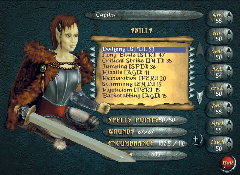 [3] 译者注:《战斗尖塔》的6个种族分别是红卫人(Redguard)、布莱顿人(Breton)、诺德人(Nord)、高精灵(High Elf)、暗精灵(Dark Elf)和木精灵(Wood Elf)。兽人(Orc)、帝国人(Imperial)直到《上古卷轴3:晨风》,才首次作为可扮演角色亮相。而前作的亚龙人(Argonian)和虎人(Khajiit)未在本作登场,也许是因为帝国人存在种族歧视,战斗法师不收虎人(偷窃)与亚龙人(走私、贩毒)。
