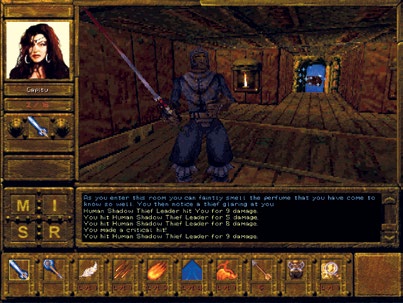 即使你能够让游戏正常运行,战斗也是一团糟。《高级龙与地下城》规则被粗糙地改编成一款即时的 ARPG,玩家和敌人都打不中对方,直到其中一方掷骰子掷到了命中的一面——所以在游戏初期的几小时里,一次普通攻击就可以秒杀玩家。