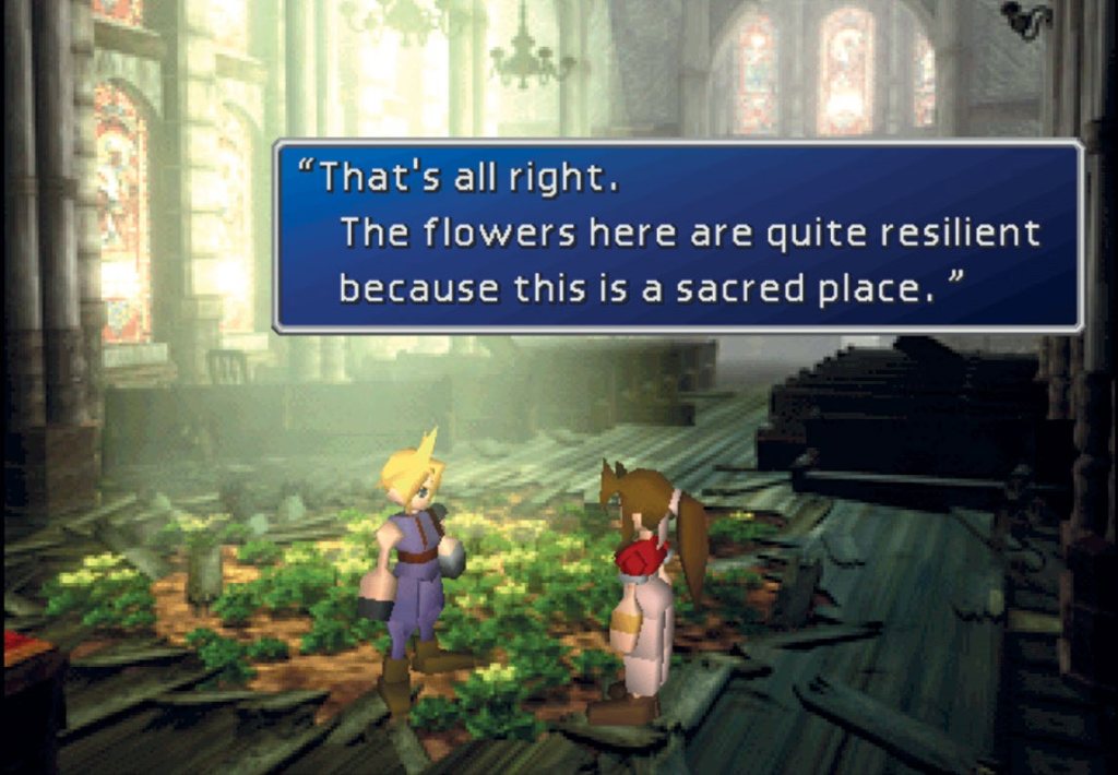 后人将类似体裁的游戏统称为日式角色扮演游戏(即 JRPG),FF7 就是 JRPG 的代表作。传统 RPG 爱好者要做好心理准备:线性剧情叙事才是此类游戏的重心所在,传统 RPG 游戏的道德抉择与战术选择要么不复存在、要么大不相同。不过,如果我们能够结合 FF7 的设计初衷来鉴赏这款游戏,不难发现,《最终幻想 7》艺术性之高,毋庸置疑[5]。