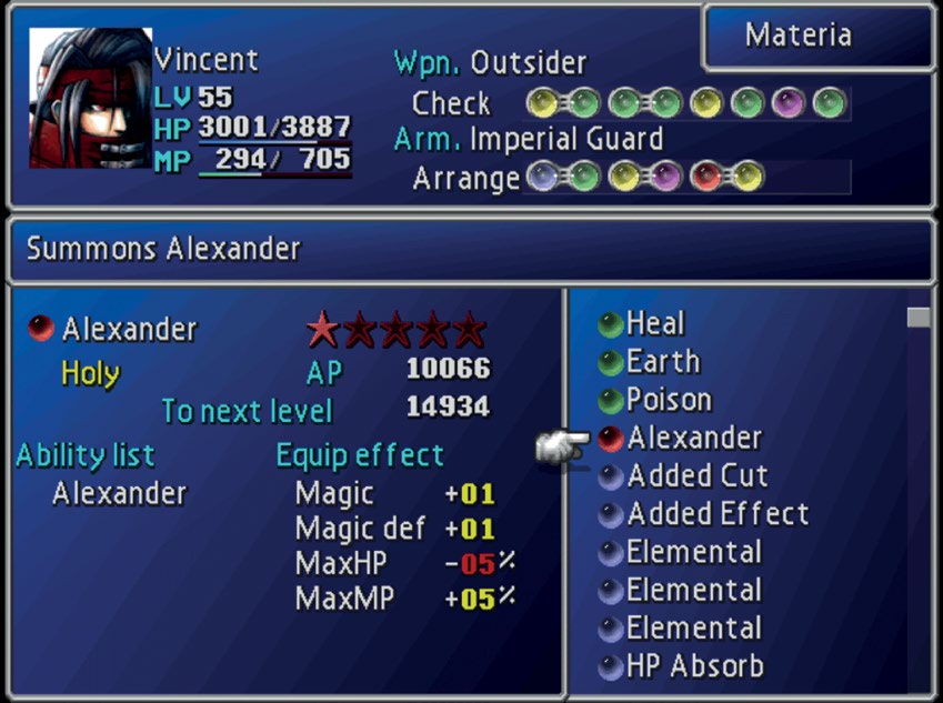 换个角度来看,FF7 其实也没有世人吹捧的那么“史无前例”,而是《最终幻想》系列多年发展后水到渠成的产物。早在《最终幻想 5》(Final Fantasy V),游戏设计者就开始弱化传统 RPG 职业流派在游戏中的作用。这种现象一直延续,到了 FF7,不同人物的属性差异微乎其微,除非你是大师级玩家,否则感受不到个中差异。只有一个角色的职业显而易见——爱丽丝(Aeris)——显然她是一名白法师。某种程度上说,爱丽丝的结局也是一个鲜活的例子,侧面反映出职业流派对以情节为核心的 RPG 游戏而言具有何种意义。
