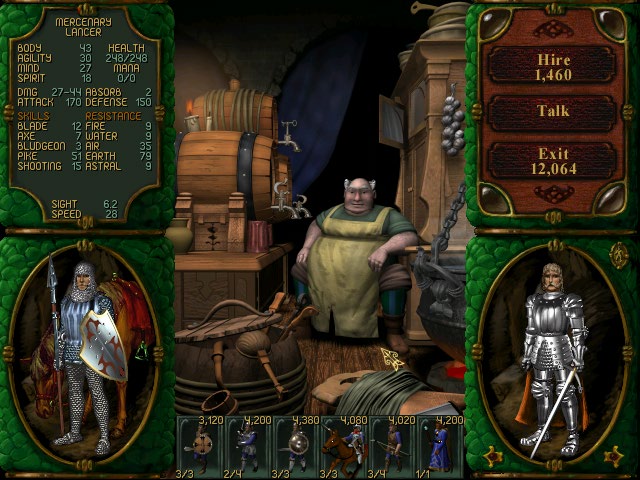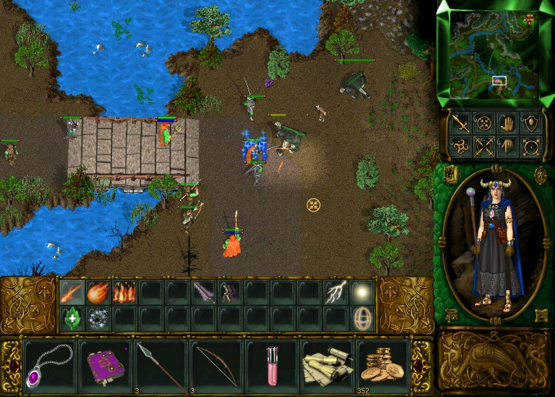 当任一英雄被击杀时,任务会自动失败,因此你需要保护好他们,将他们安置在远离前线的地方,至于脏活累活就留给佣兵来做。出于某些原因,你的战士英雄会比雇用的士兵更弱,所以过不了多久,你就只剩两个魔法师还有用处了,毕竟他们拥有足足 24 个不同的法术,如果你能在合适的时机果决施展,它们足以决定一场战斗的走势。