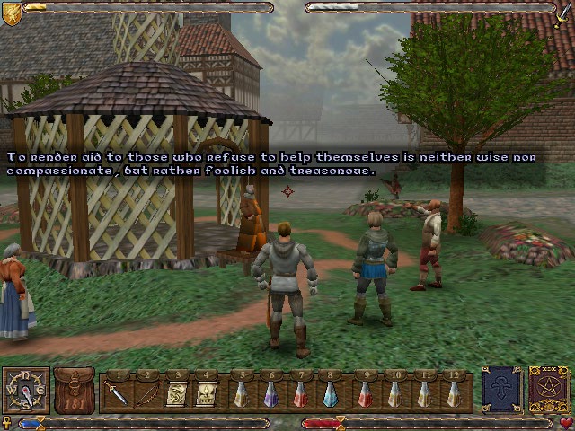 “他(Richard Garriott)想创造一个生机盎然的不列颠尼亚。我们力图实现这一构想——鸟儿在林间振翅翱翔,找到地方筑巢,而后安静地栖息于此;我们竭尽所能,让这片天地焕发生机。不过正因为如此,我们无暇顾及其他更具 RPG 风格的元素。比方说,我们舍弃了团队机制、舍弃了 NPC 轨迹机制、舍弃了 NPC 背包机制、舍弃了锻造机制……*。”