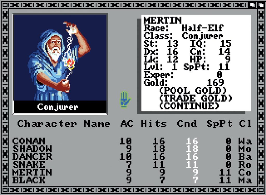 这是你创建角色的界面,初始属性和财富通过摇点随机生成。这么高的图像质量在当时是相当罕见的。
