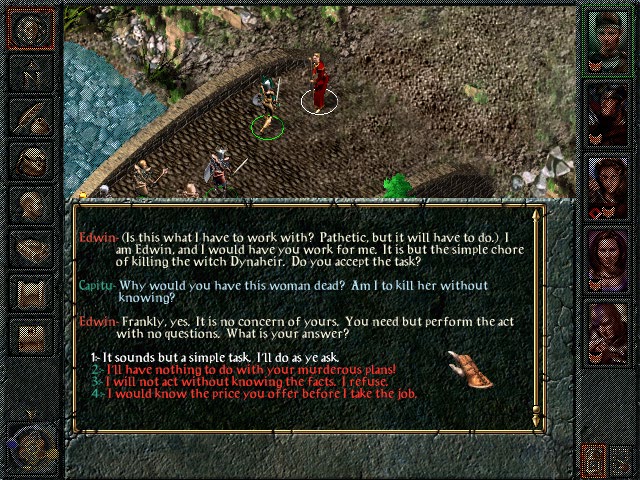 但不要忘了,原本 AD&D 提供一个庞大的游戏框架——在地牢大师(Dungeon Master)[4]全知全能的引导(或帮助或阻碍)下,玩家扮演不同的角色随机应变。但《博德之门》并不具备传统 AD&D 的灵活性,很可能出现敌我战力悬殊的情况。只有灵活利用战术、摇点,以及 SL 大法[5],玩家才能克敌制胜。[6]